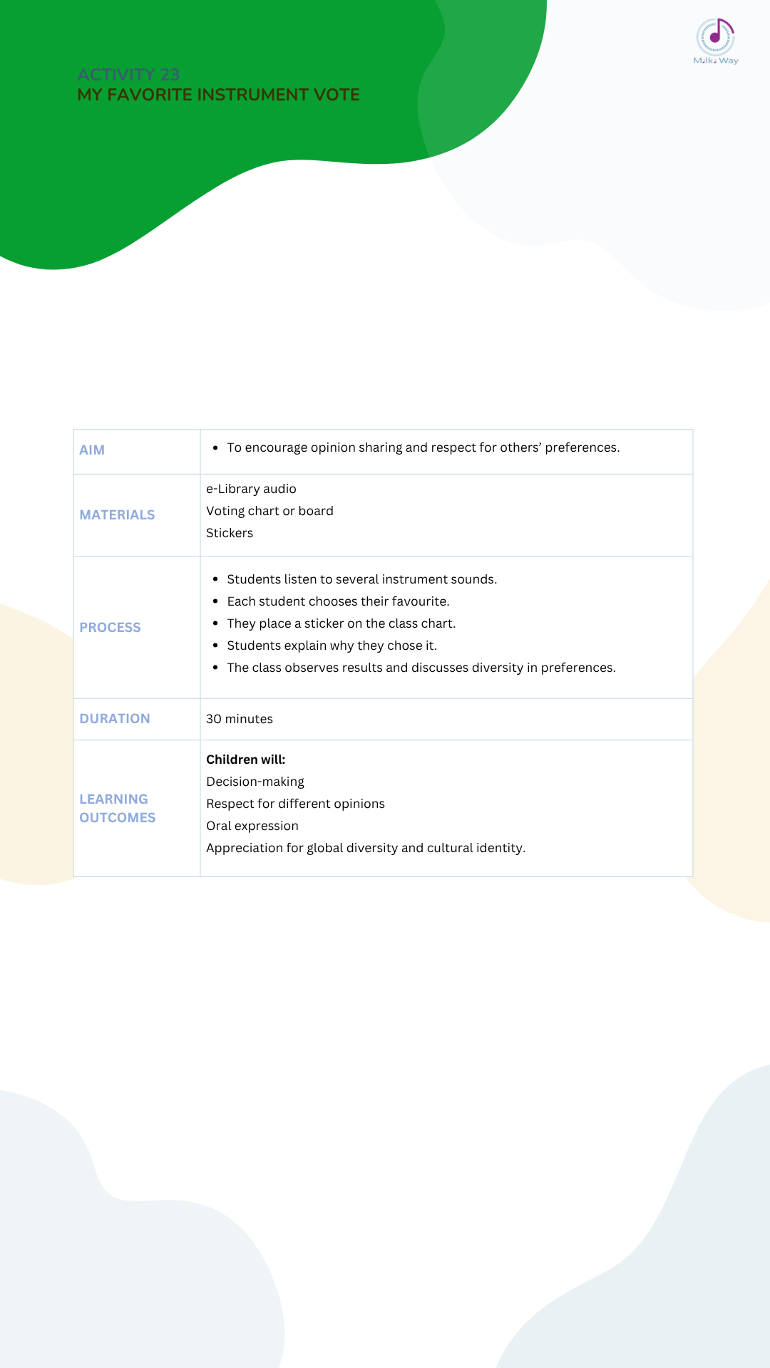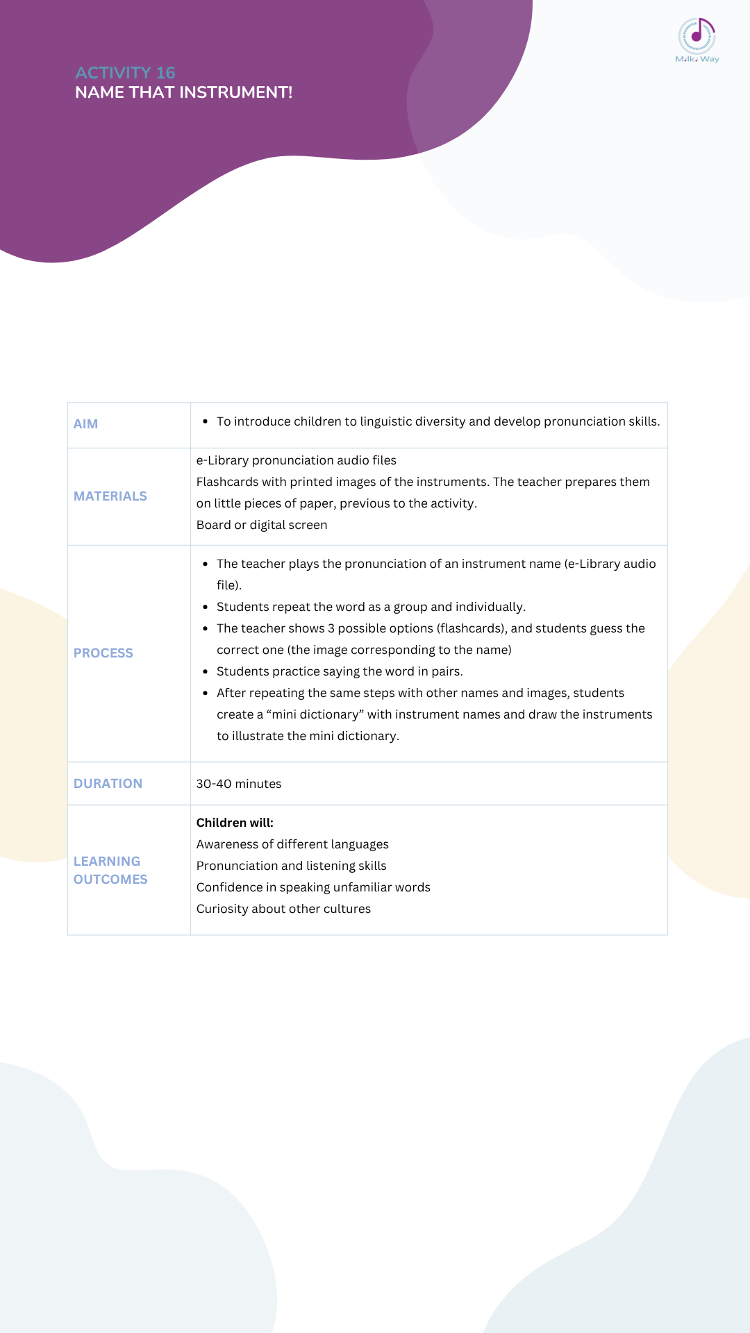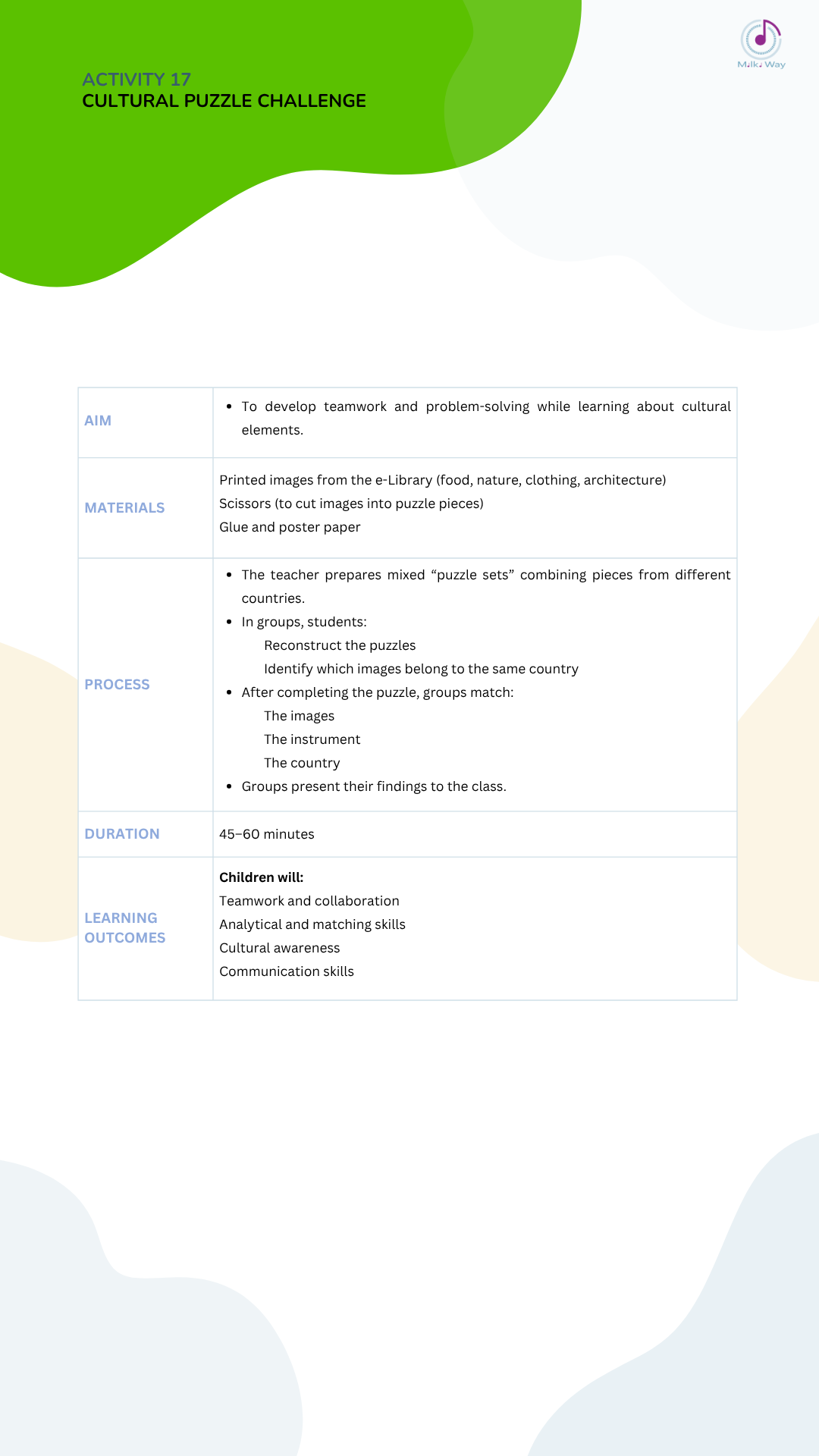 Below you can view and download all activities in four languages, listed from Activity 1 to Activity 30.