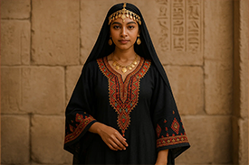 He approaches his friend, holding a strange instrument made with a vertical metal rod and three horizontal ones. He strikes it, making it resonate loudly. She, she, she, she…Then, whispering in Khalid’s ear, he says: “Do you want to know something fantastic? Listen… If a group of children each play their own sistrum, all together, the goddess Hathor appears, the goddess of joy, beauty, music, dance, love, sweet as a mother…”