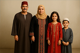 After a week, Omar and Khalid, with a group of children, gather in a palm grove, stand in a circle, and play the sistrums together.
