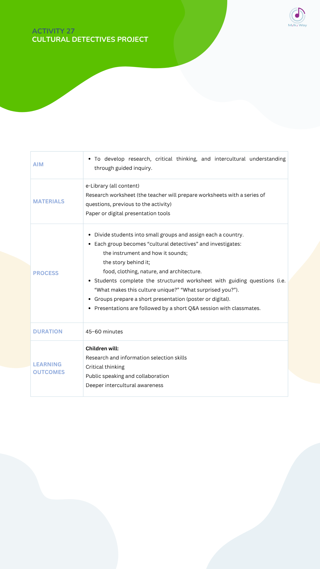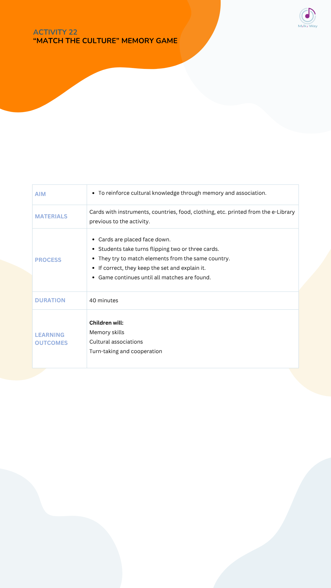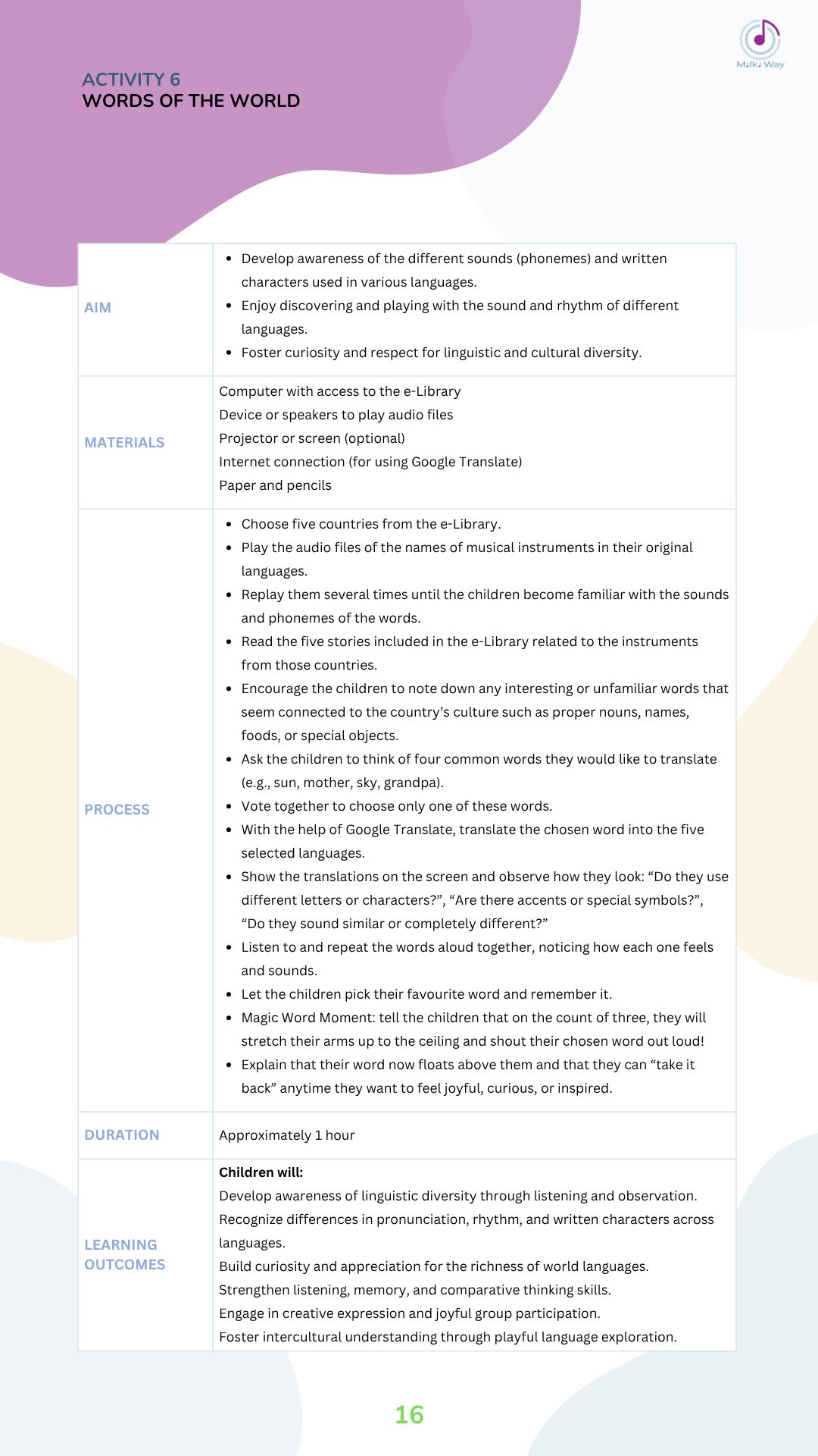 Below you can view and download all activities in four languages, listed from Activity 1 to Activity 30.