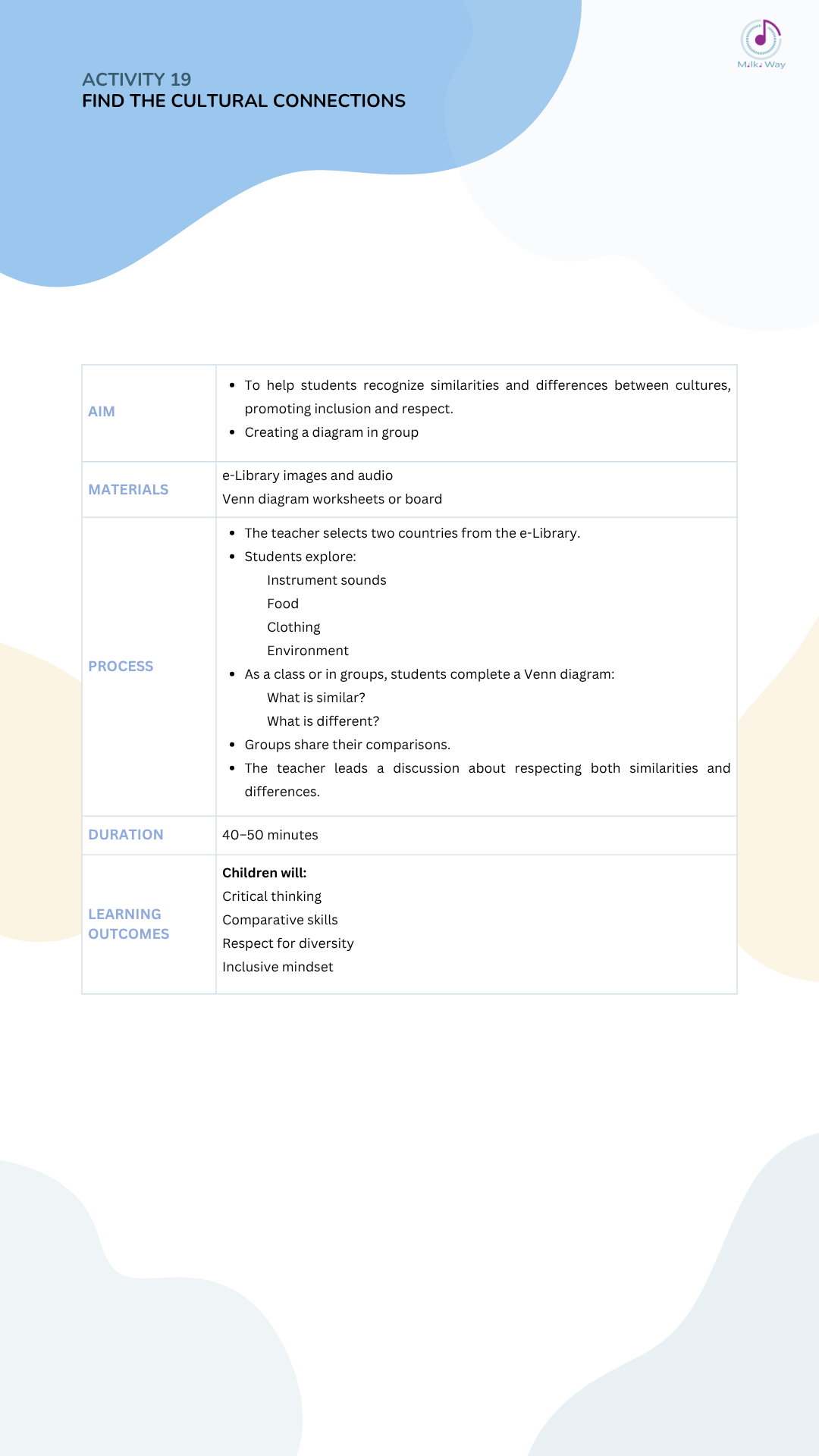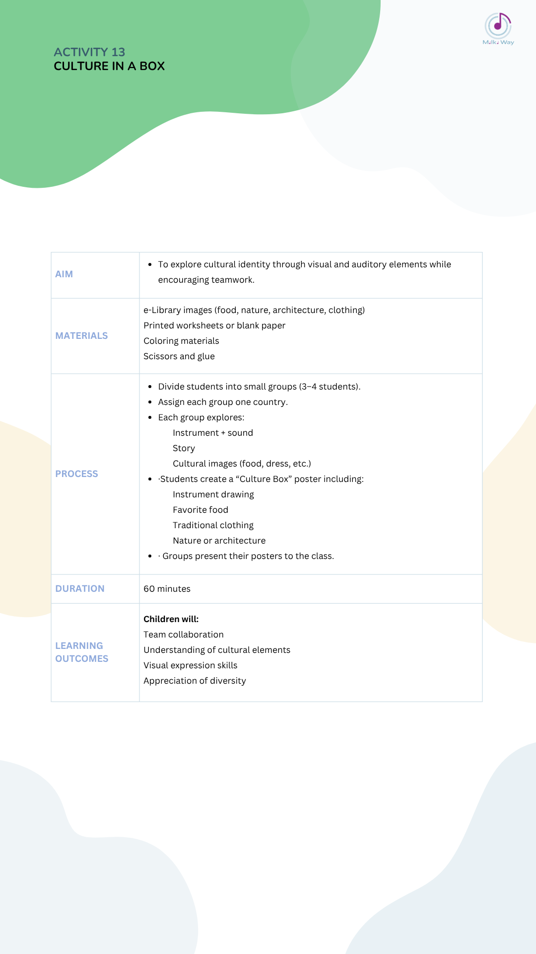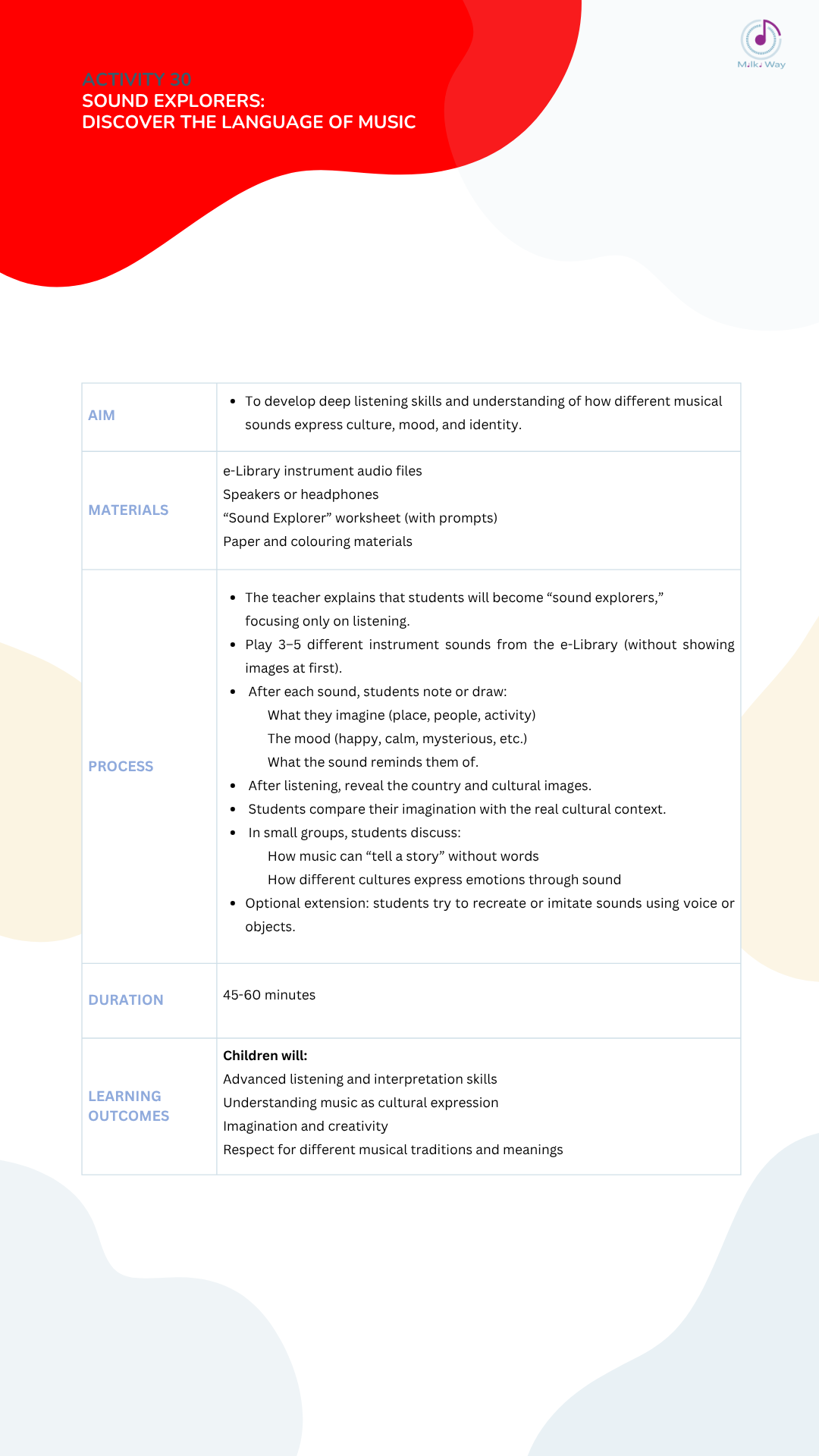 Below you can view and download all activities in four languages, listed from Activity 1 to Activity 30.