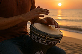 Once upon a time, there was a little drummer named Darbuki who lived on a sunny North Africa country called Tunisia. He was a space-age drum, shaped like a cup, with a cheerful sound that made everyone dance: Dum, tek, tek, dum!